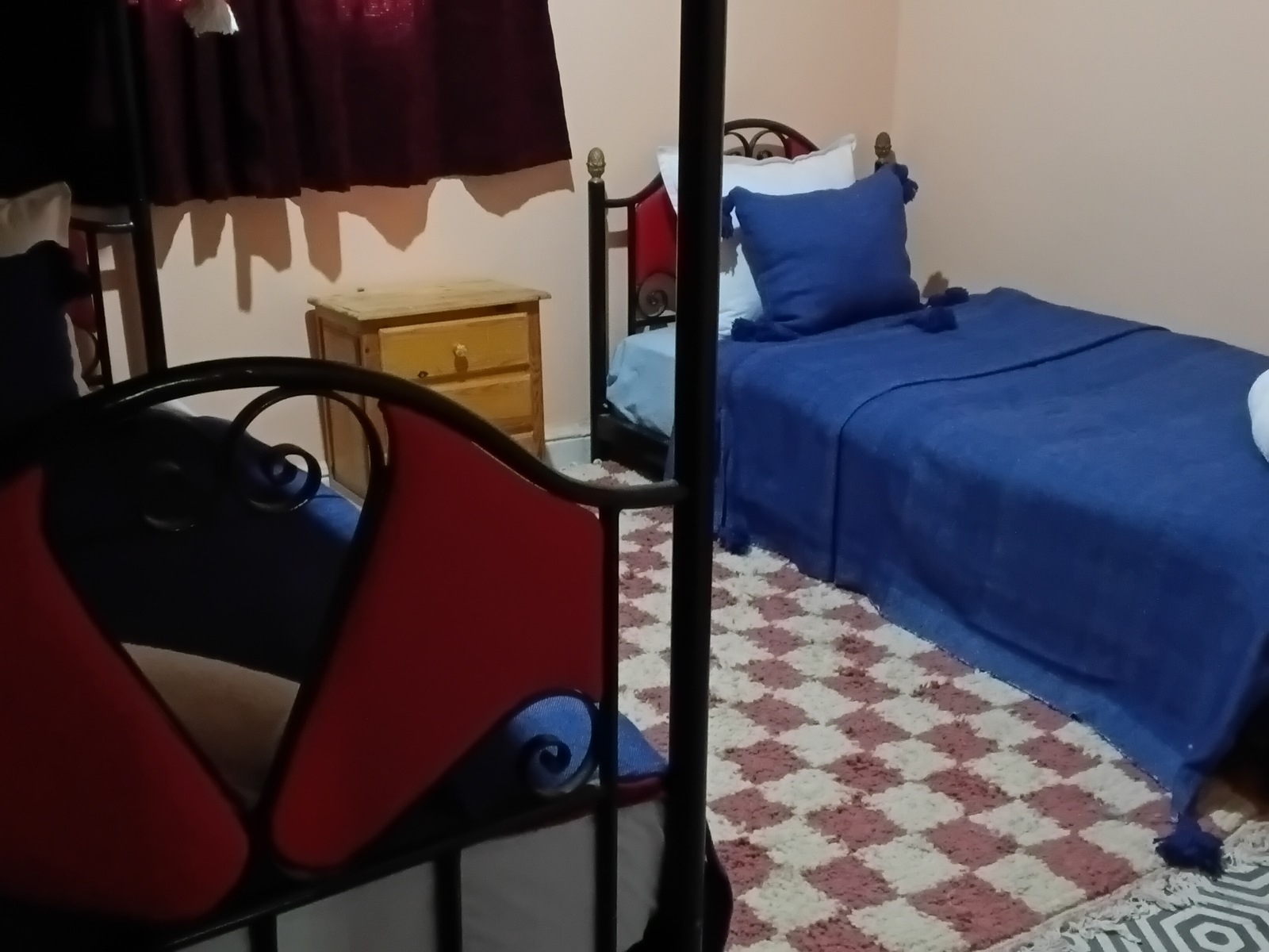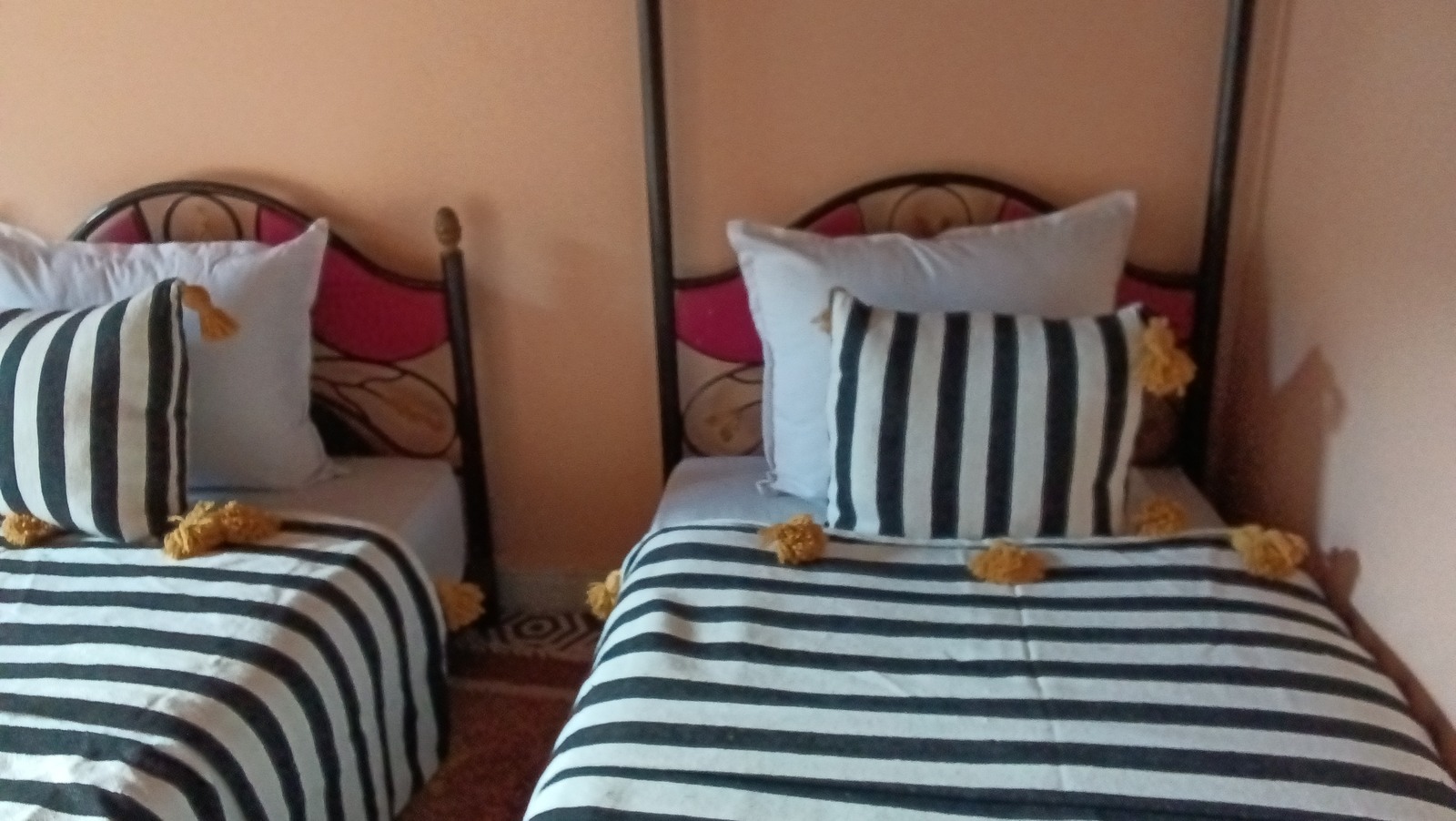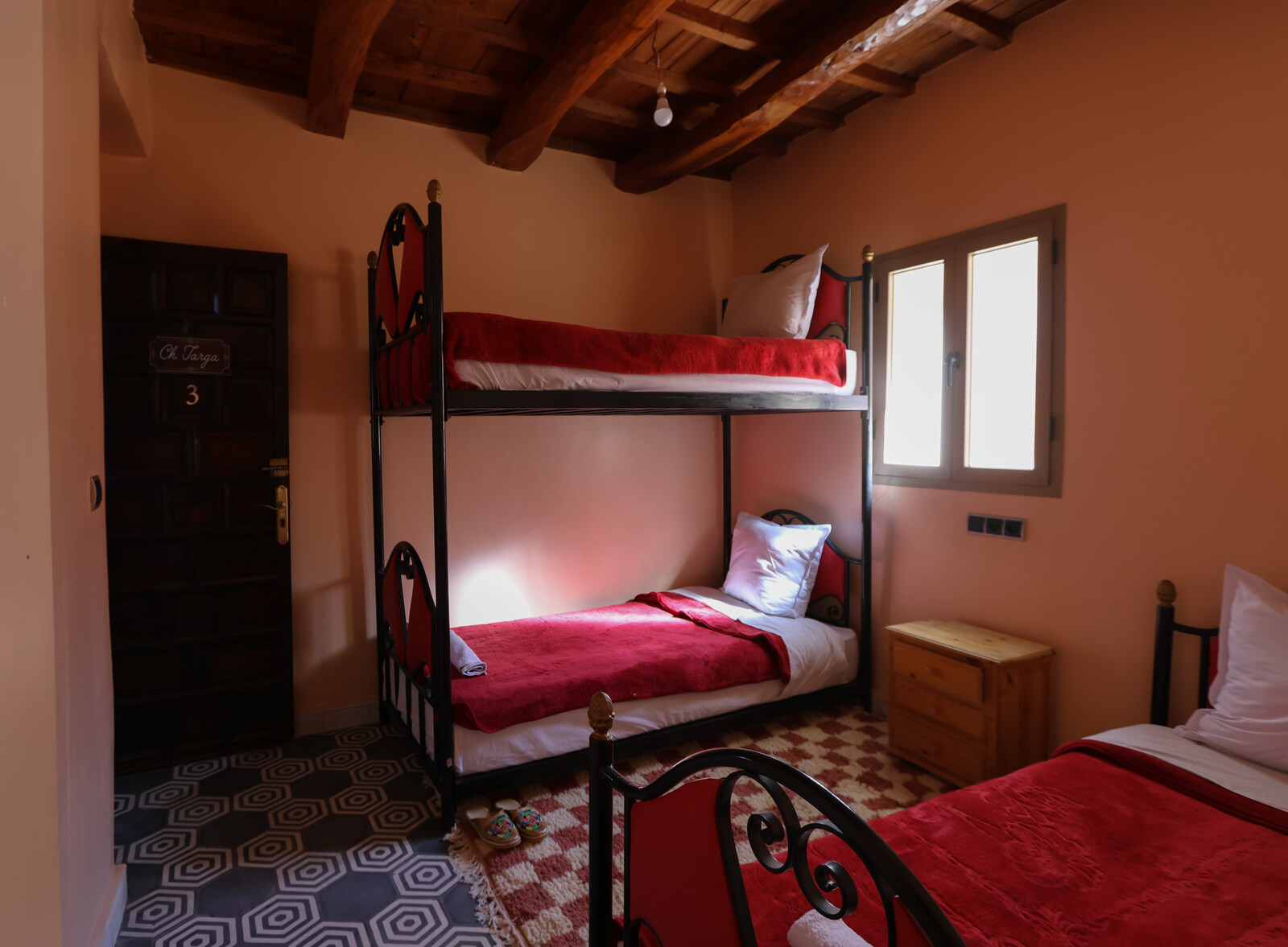 Chambre Dormitor Targa ★★★★★ 5/5 Chambre Dormitor Targa Chambre avec 3 lits séparés et salle de bain privative (toilette et douche) Surface : 15 m² – Chambre propre, calme et avec fenêtre Prix : 36€ pour la chambre ou 12€ par personne Réserver cette chambre Arrivée Départ Nom Email Téléphone Message Réservez maintenant Services inclus Wifi Gratuit Coffre Fort Encastré Parking Services De Chambres Découvrez nos autres hébergements Chambre Ilyas Chambre Taferkka Chambre Tamatert Chambre Toubkal Grand Dortoir 6 pax Grand Dortoir Large Chambre Triples Simples Chambre Double Ou Twin Chambre Du Balcon Double Ou Twin