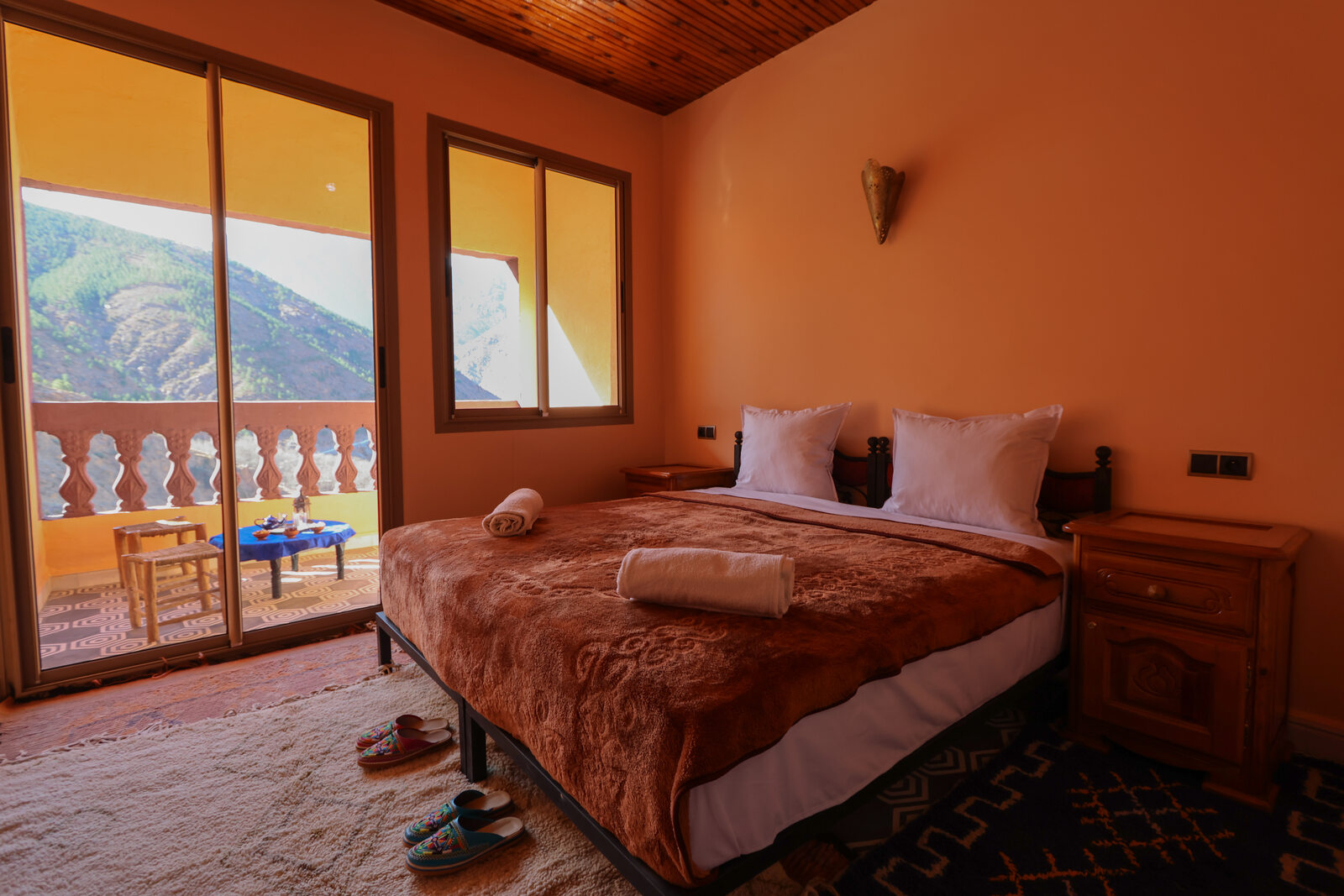 Chambre Imane ★★★★★ 5/5 Chambre Imane Elle peut servir de chambre double ou de chambre simple Avec toilettes et douche privatives Possède un joli balcon avec une vue panoramique magnifique sur le Haut Atlas et les villages de la vallée – une chambre très calme Surface de la chambre : 16 m² Prix : 30 euros Réserver cette chambre Arrivée Départ Nom Email Téléphone Message Réservez maintenant Services inclus Wifi Gratuit Coffre Fort Encastré Parking Services De Chambres Découvrez nos autres hébergements Chambre Ilyas Chambre Taferkka Chambre Tamatert Chambre Toubkal Grand Dortoir 6 pax Grand Dortoir Large Chambre Triples Simples Chambre Double Ou Twin Chambre Du Balcon Double Ou Twin