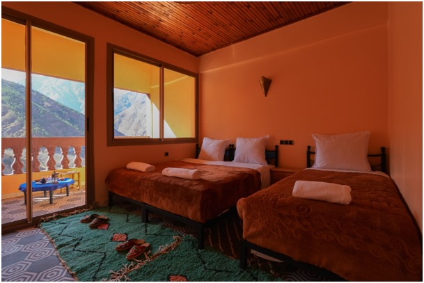Chambre Outos ★★★★★ 5/5 Chambre Outos Chambre triple, adaptable pour couples ou familles (couples avec enfants) Salle de bain privative avec toilettes et douche Balcon avec vue magnifique sur le mont Toubkal et la forêt Superficie : 20 m² Prix : 40 euros par nuit Réserver cette chambre Arrivée Départ Nom Email Téléphone Message Réservez maintenant Services inclus Wifi Gratuit Coffre Fort Encastré Parking Services De Chambres Découvrez nos autres hébergements Chambre Ilyas Chambre Taferkka Chambre Tamatert Chambre Toubkal Grand Dortoir 6 pax Grand Dortoir Large Chambre Triples Simples Chambre Double Ou Twin Chambre Du Balcon Double Ou Twin