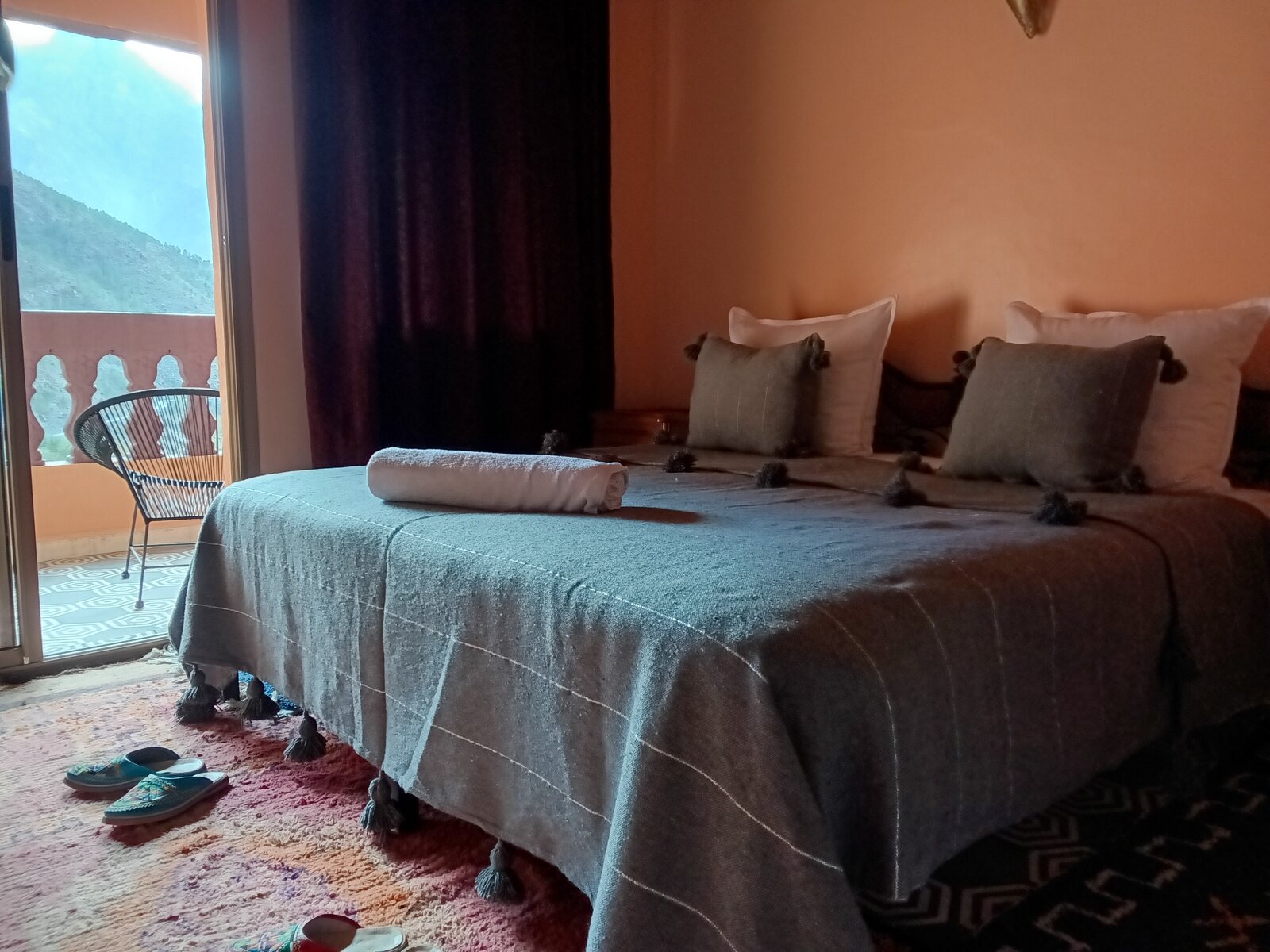 Kamer Imane ★★★★★ 5/5 Imane KamerHet is zowel een tweepersoons- als een eenpersoonskamerMet eigen toilet en doucheBeschikt over een mooi balkon met prachtig panoramisch uitzicht op het Hoge Atlasgebergte en de dorpen in de vallei – een zeer rustige kamerDe kamer is 16 m² grootPrijs: 30 euro Deze kamer reserveren Inchecken Uitchecken Naam Email Telefoon Message Boek nu Inbegrepen diensten Gratis Wifi Ingebouwde kluis Parkeergelegenheid Room Services Ontdek onze andere accommodaties Ilyas Kamer Taferkka Kamer Tamatert Kamer Toubkal Kamer De grote slaapzaal voor 6 personen De grote slaapzaal voor 5 personen Eenvoudige kamer voor 3 personen Dubbele standaard kamer Balkon kamer – 2 personen